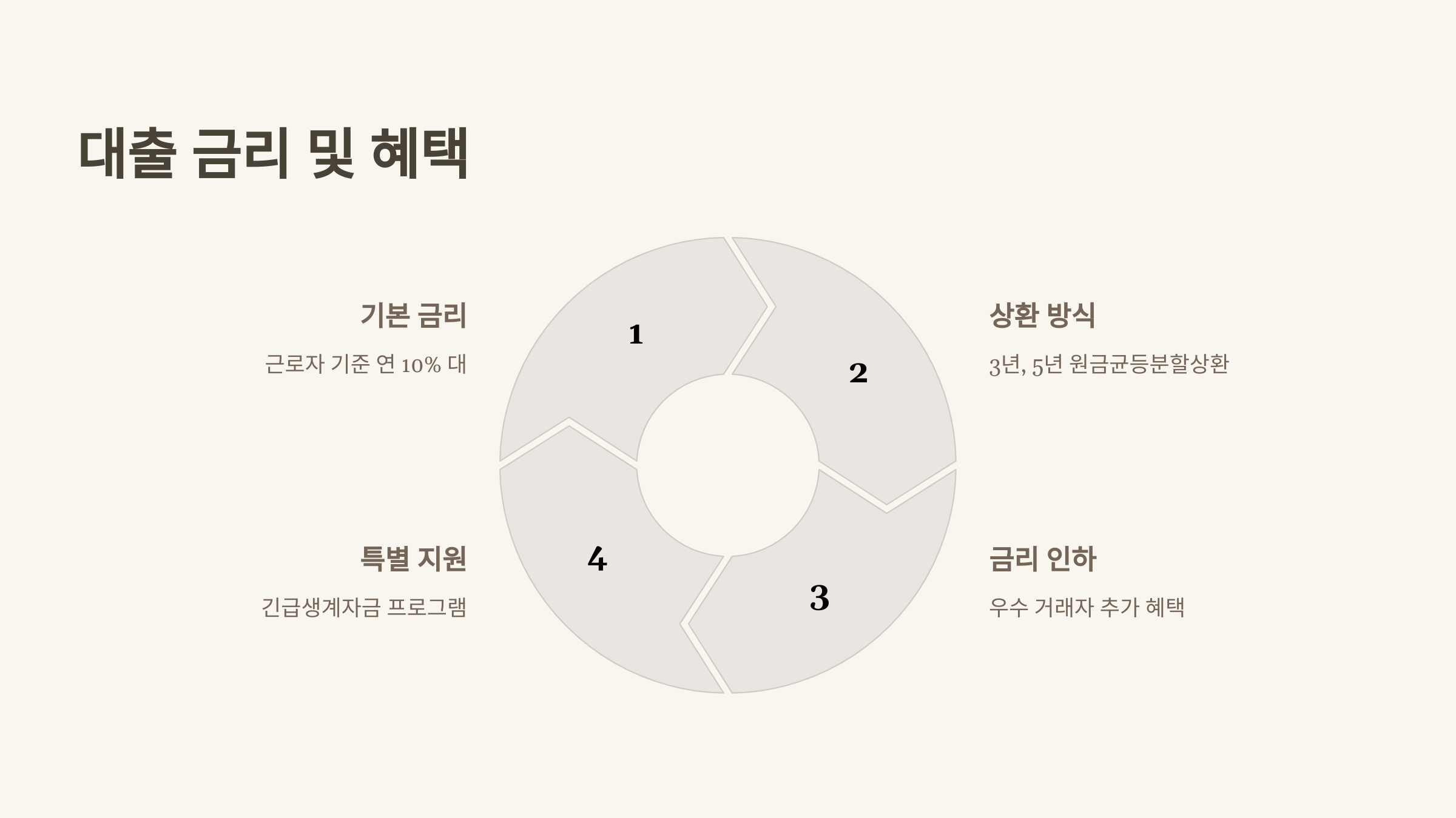 - 상환 유연성: 3년 또는 5년 원금 균등분할 상환, 부담 줄여줘요.