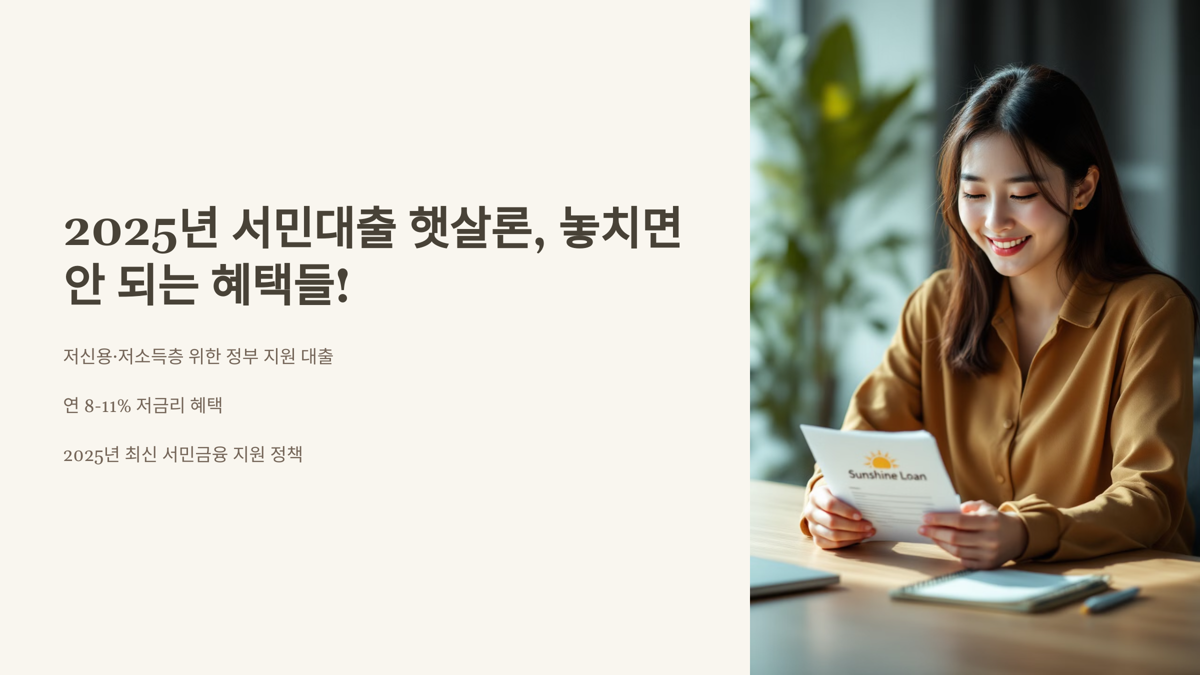 서민대출 햇살론은 단순한 대출이 아니라, 금융 부담을 덜고 새 출발을 돕는 든든한 지원군이에요.