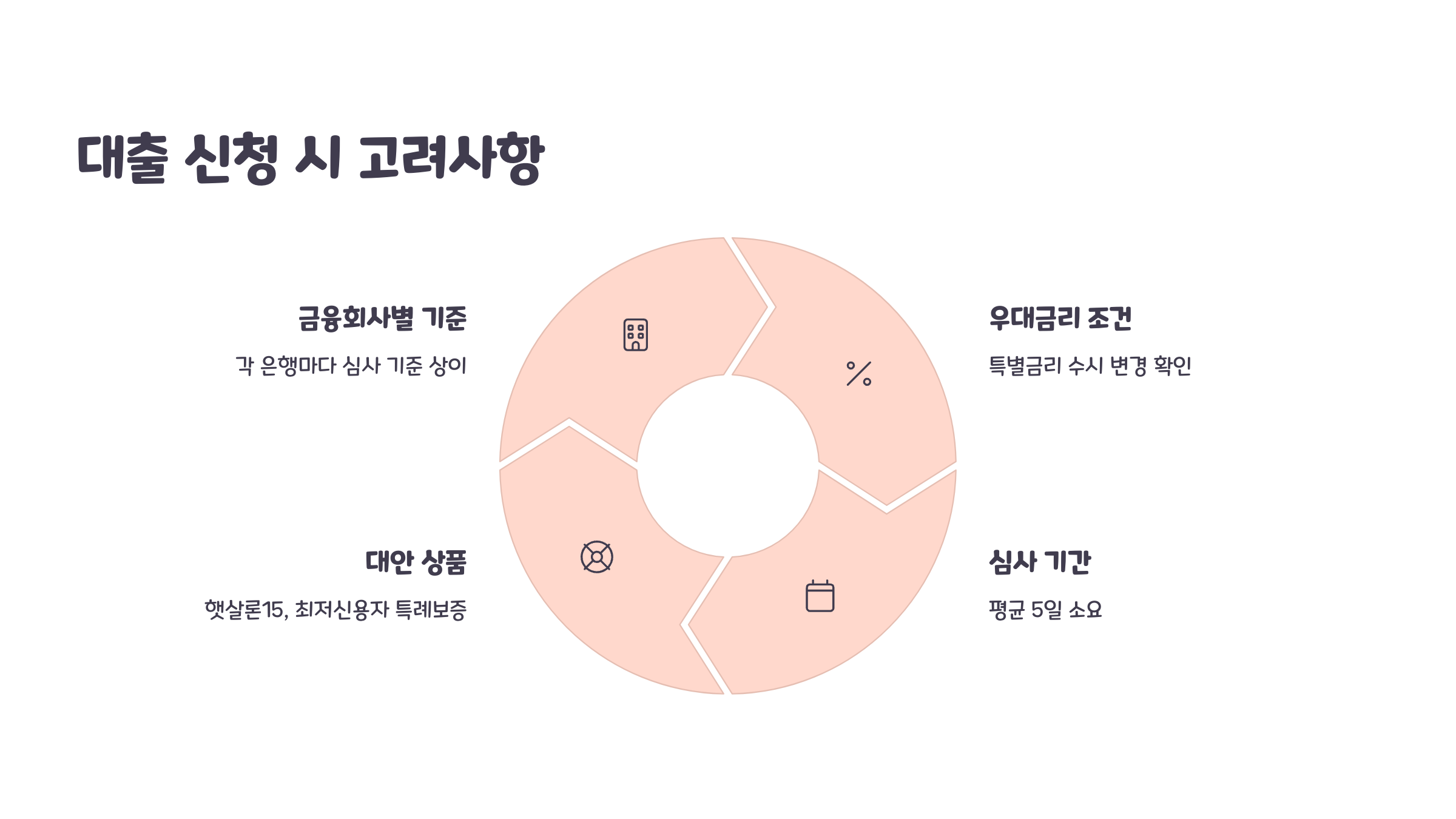 성실 상환, 금융 교육 이수, 사회적 취약계층(기초생활수급자, 다자녀 가정 등)에 해당하면 최대 1.0~2.0% 우대금리를 받을 수 있습니다. 은행별 우대 조건을 꼼꼼히 확인하세요.