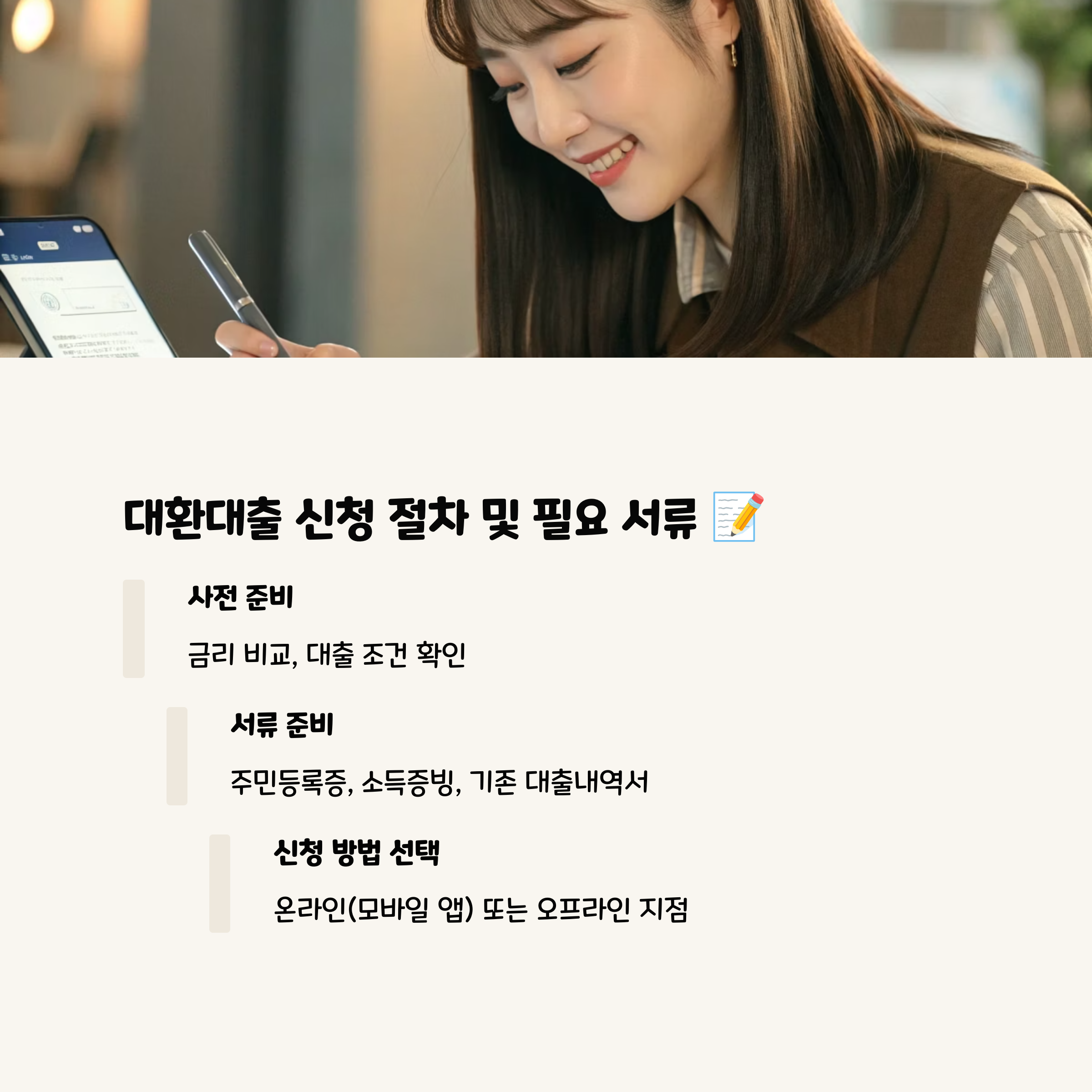 - 사전 준비: 신용점수 확인, 필요 서류 준비, 현재 대출 정보 정리