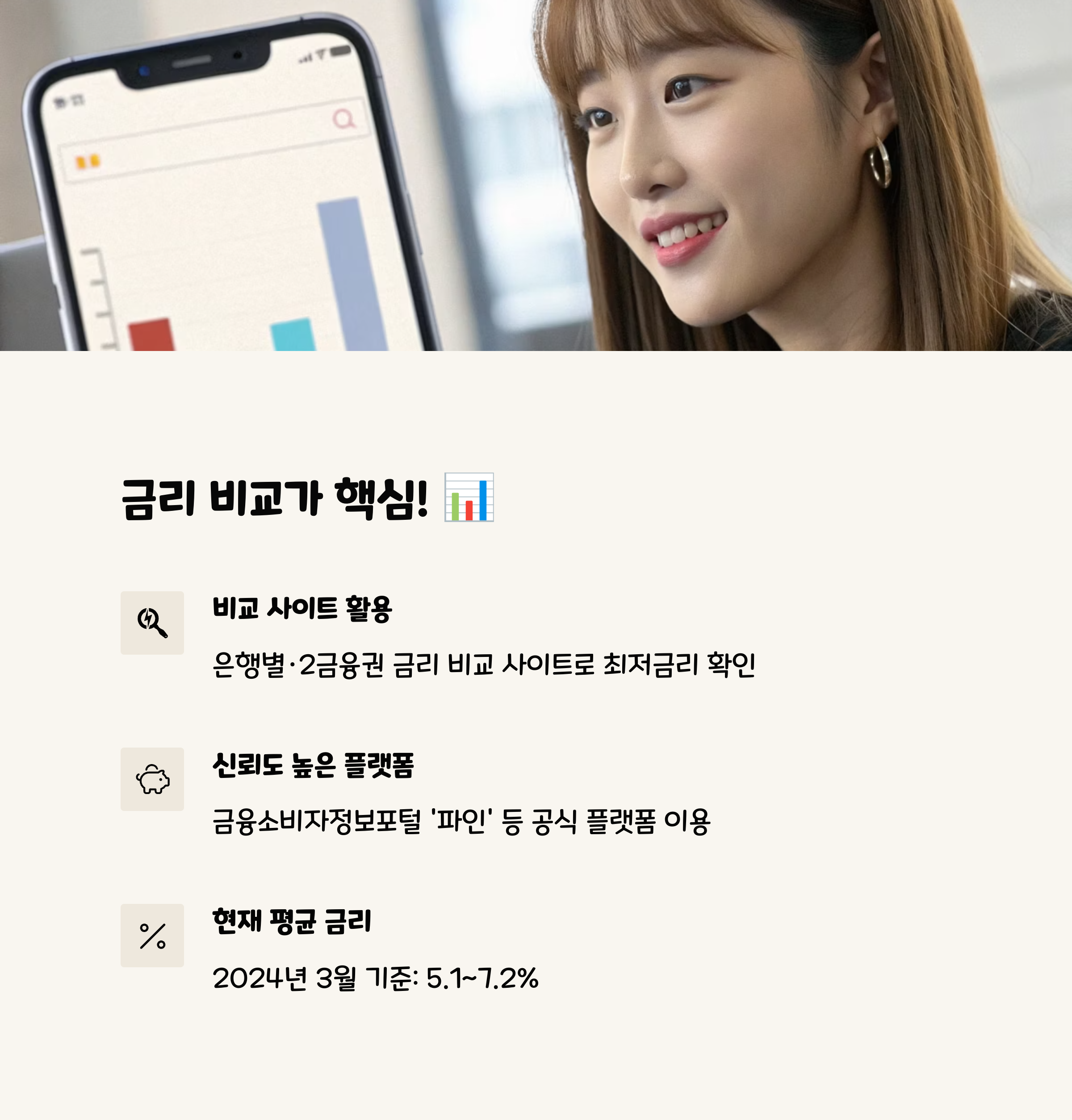 - 금융기관 비교: 최소 3개 이상의 금융기관 금리 및 조건 비교