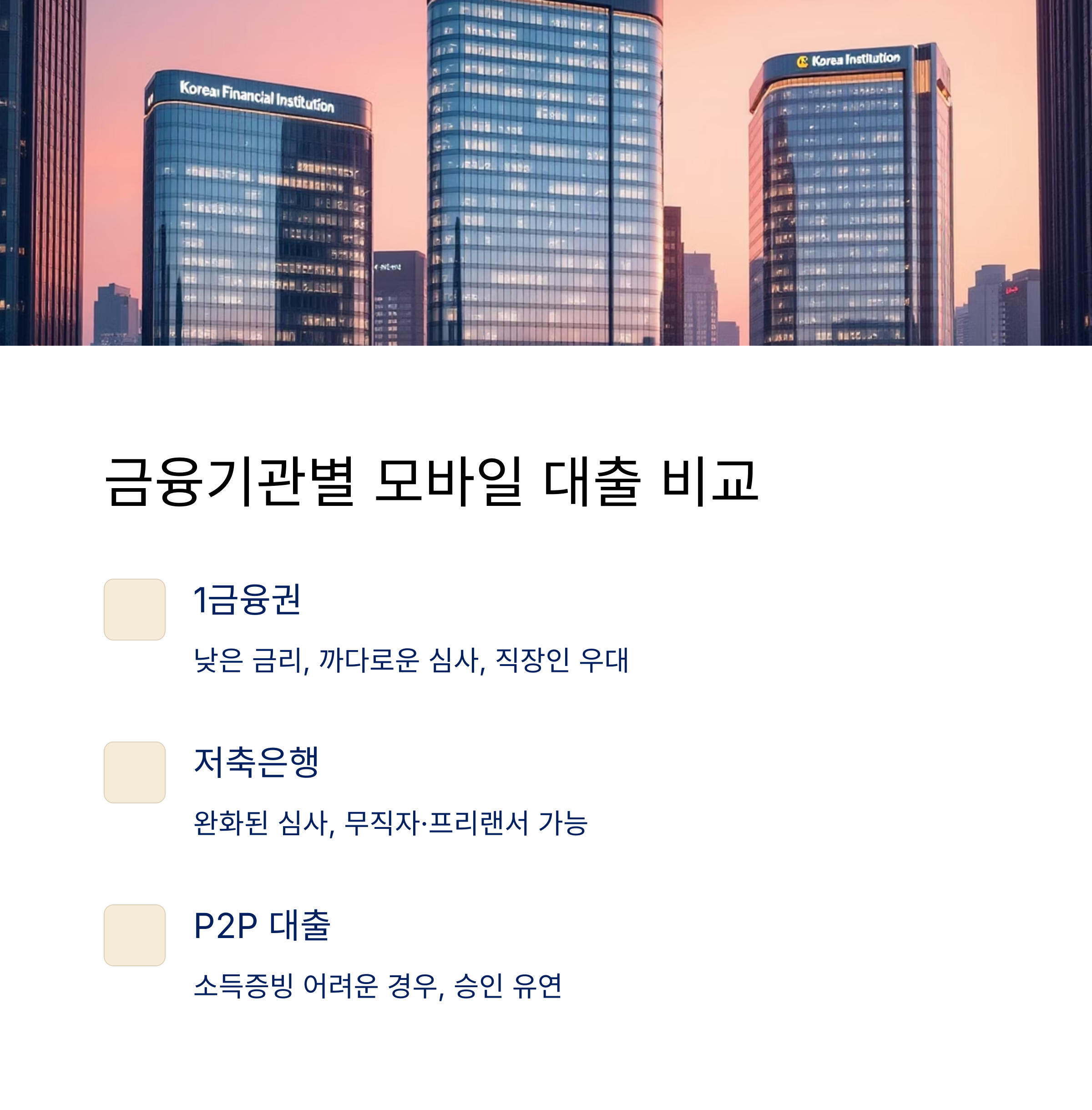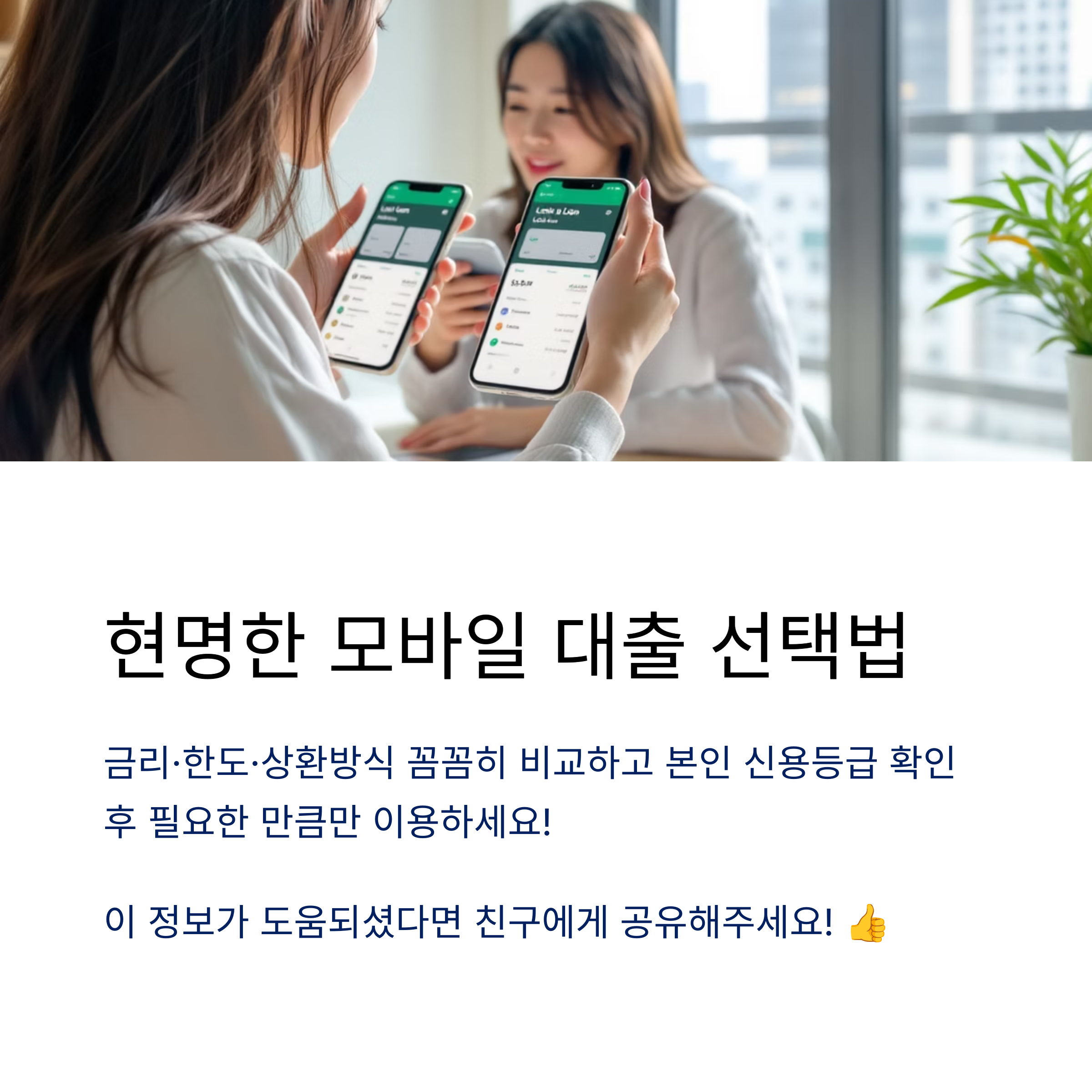 카카오뱅크, 하나은행 같은 1금융권 상품부터 시작해, 필요 시 SBI저축은행이나 페퍼저축은행 같은 2금융권을 검토하세요. 금융감독원(www.fss.or.kr)에서 제공하는 정보를 참고해 안전하고 현명한 대출을 진행하시길 바랍니다. 지금 스마트폰을 열어 당신에게 맞는 대출 상품을 찾아보세요! 🚀