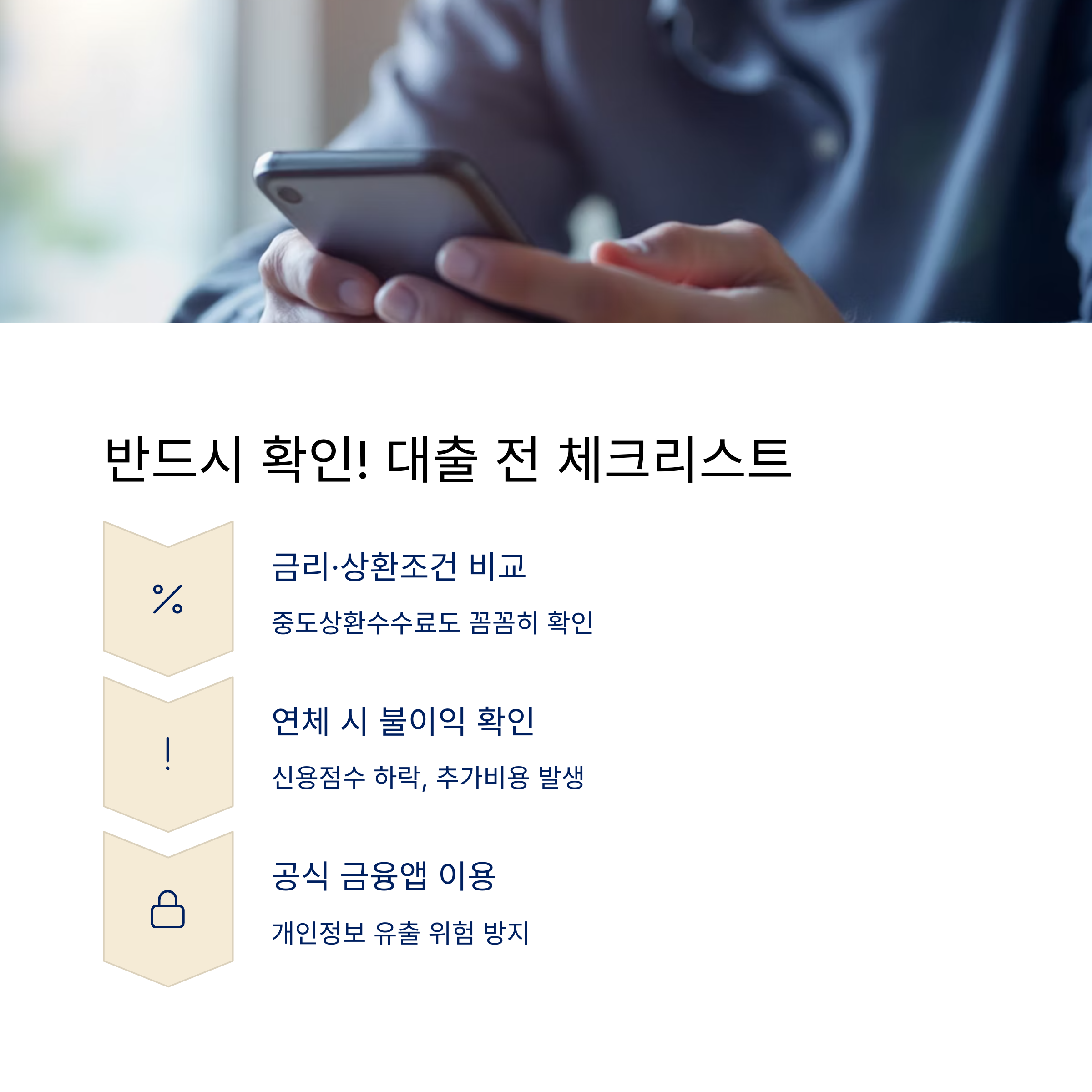 1. 금리와 수수료 확인: 연체 시 적용되는 금리, 중도상환수수료 등을 꼼꼼히 확인하세요.