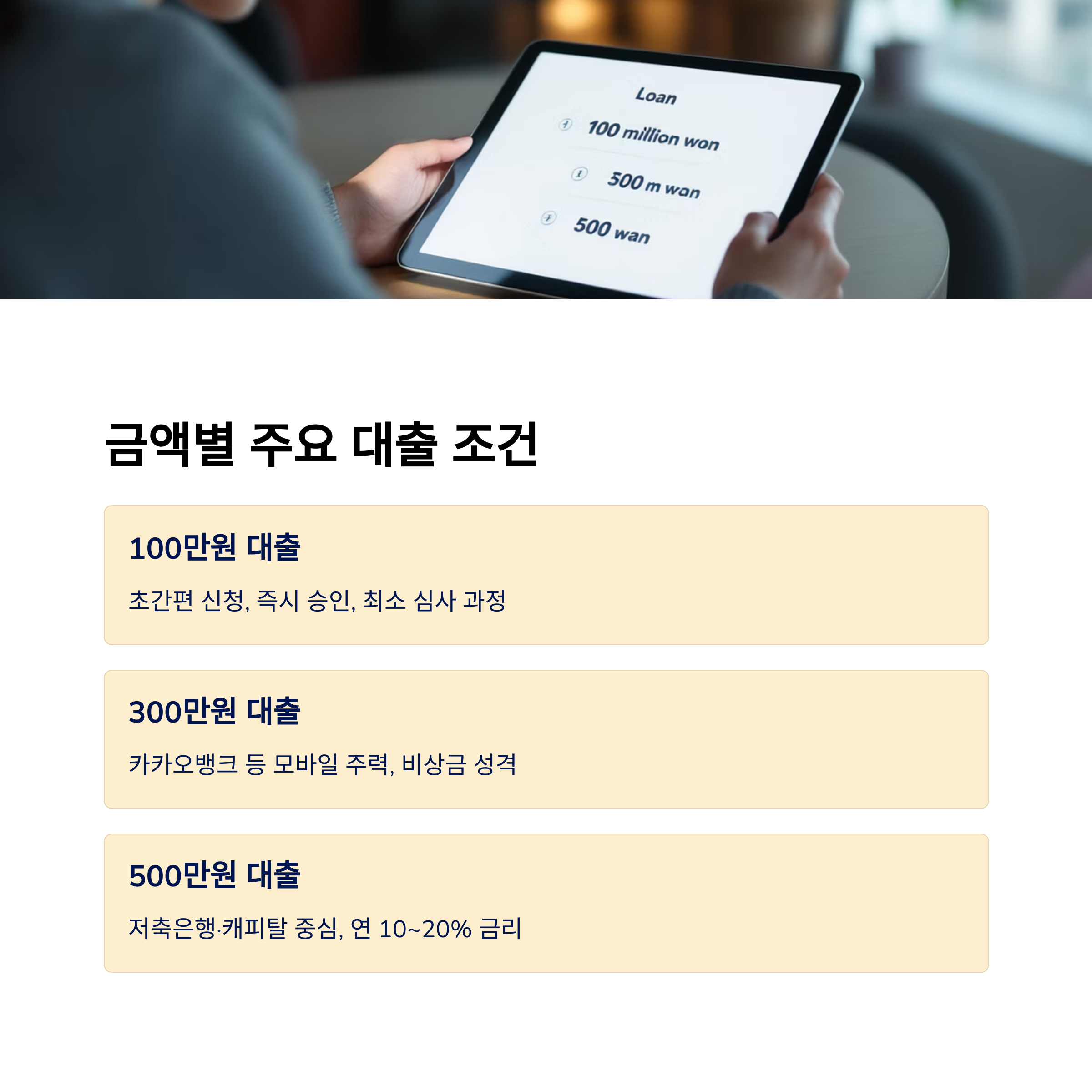 금리는 연 8~13% 수준으로 형성되며, 100만원 대출보다 심사가 조금 더 까다로울 수 있습니다.