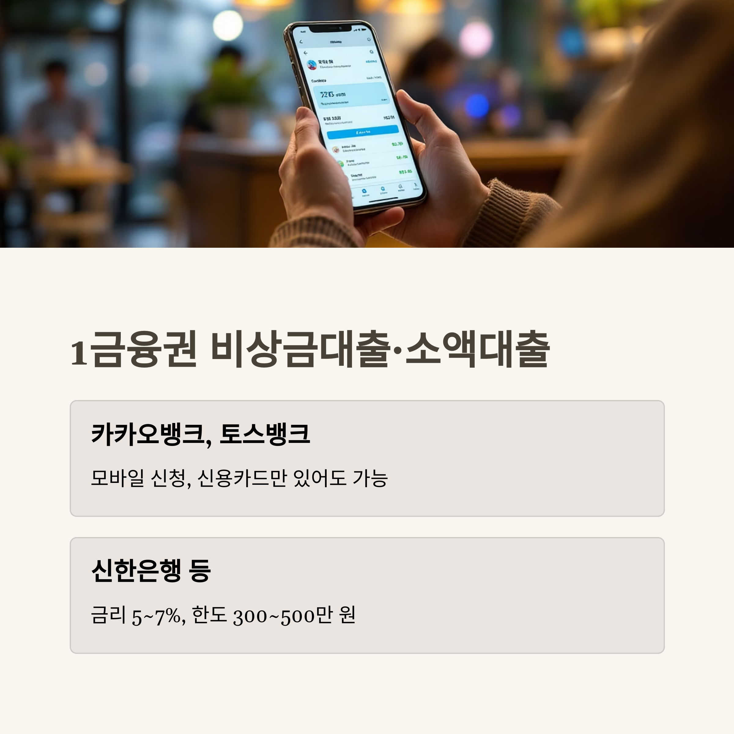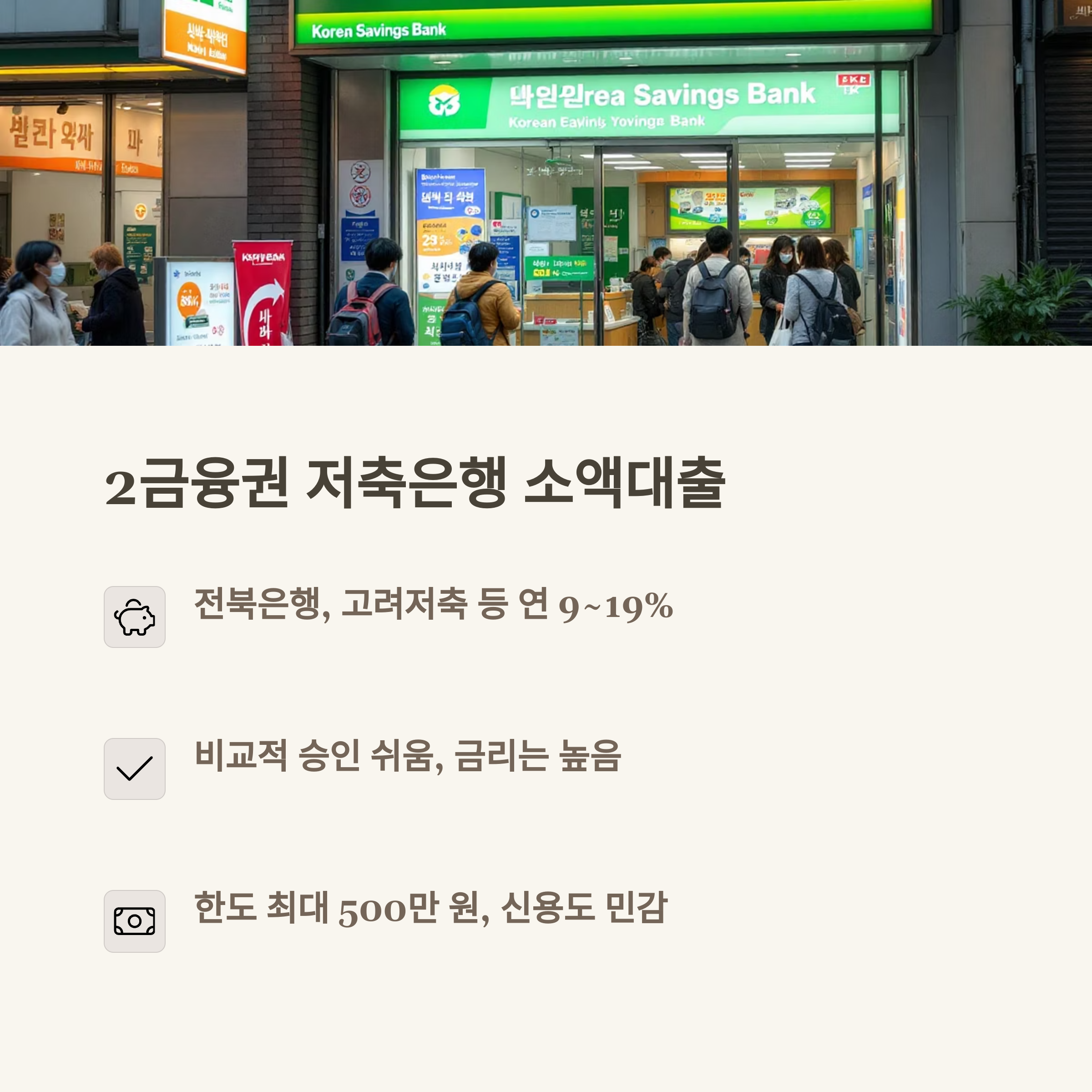 | 저축은행 | 100만원~500만원 | 10~17% | 신용도 조건부 |