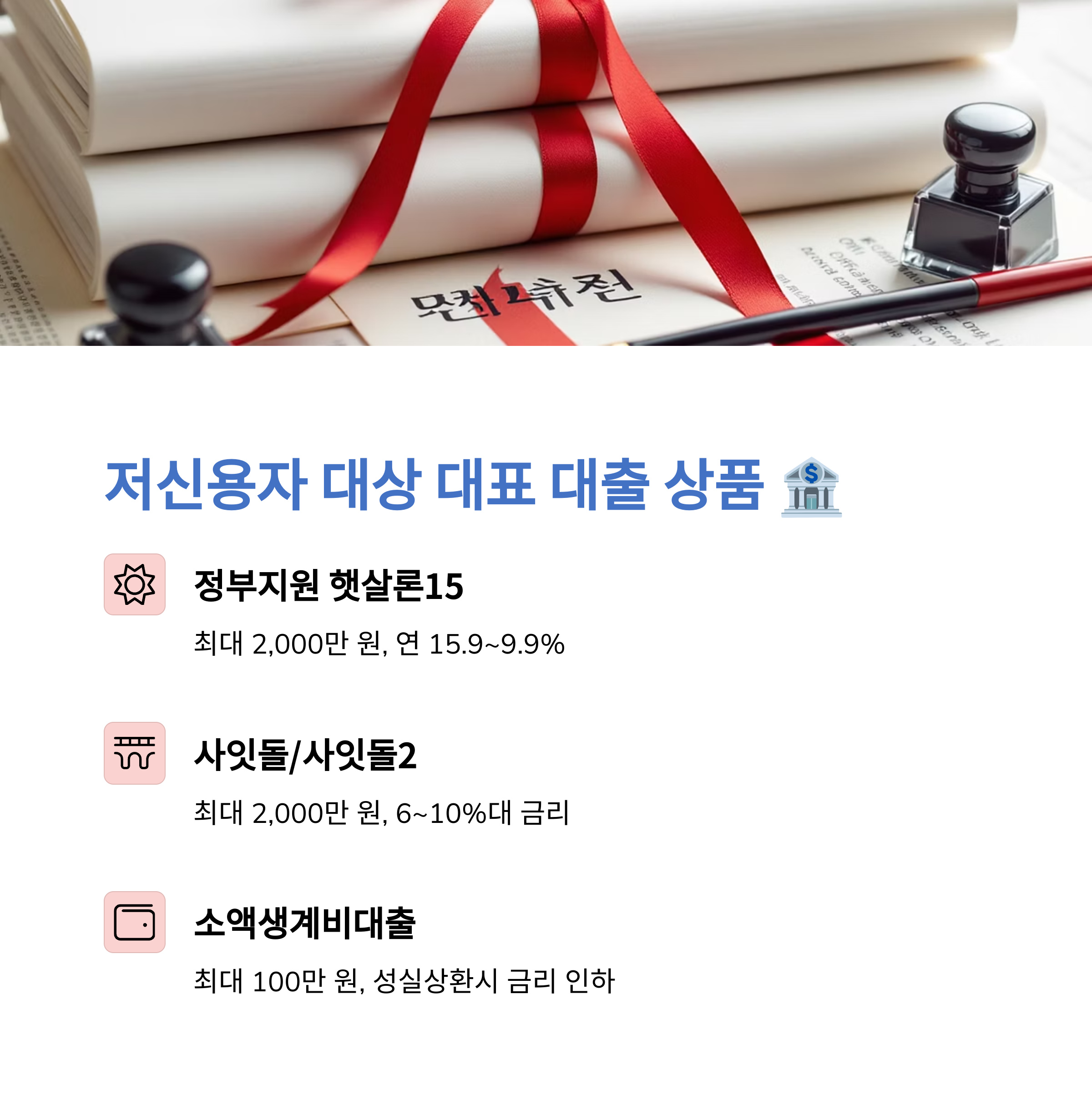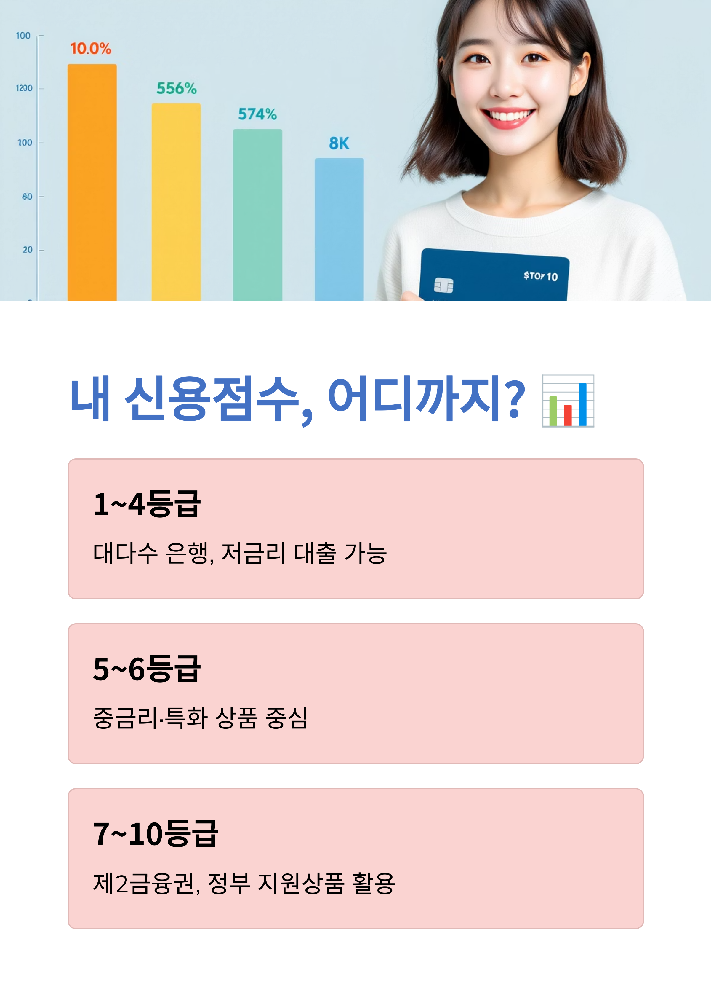 | 7~10등급 (저신용) | 제2금융권, 정부지원 서민금융 상품 검토 필요 |