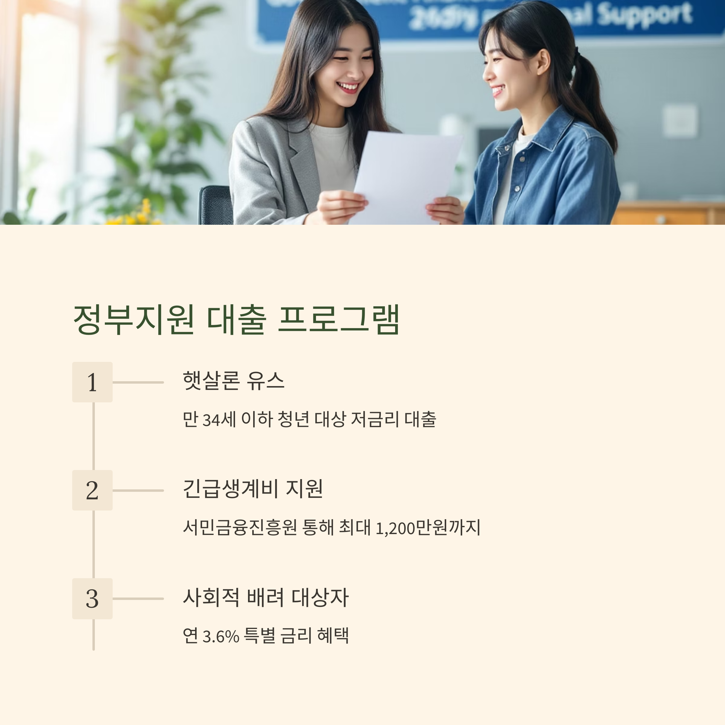 서민금융진흥원에서 운영하는 '미소금융'과 '햇살론' 같은 정부 지원 상품은 무직자도 신청할 수 있습니다. 특히 미소금융은 창업자금이나 운영자금으로 활용할 계획이 있다면 검토해볼 만합니다. 최대 2,000만원까지 저금리로 대출 가능합니다.