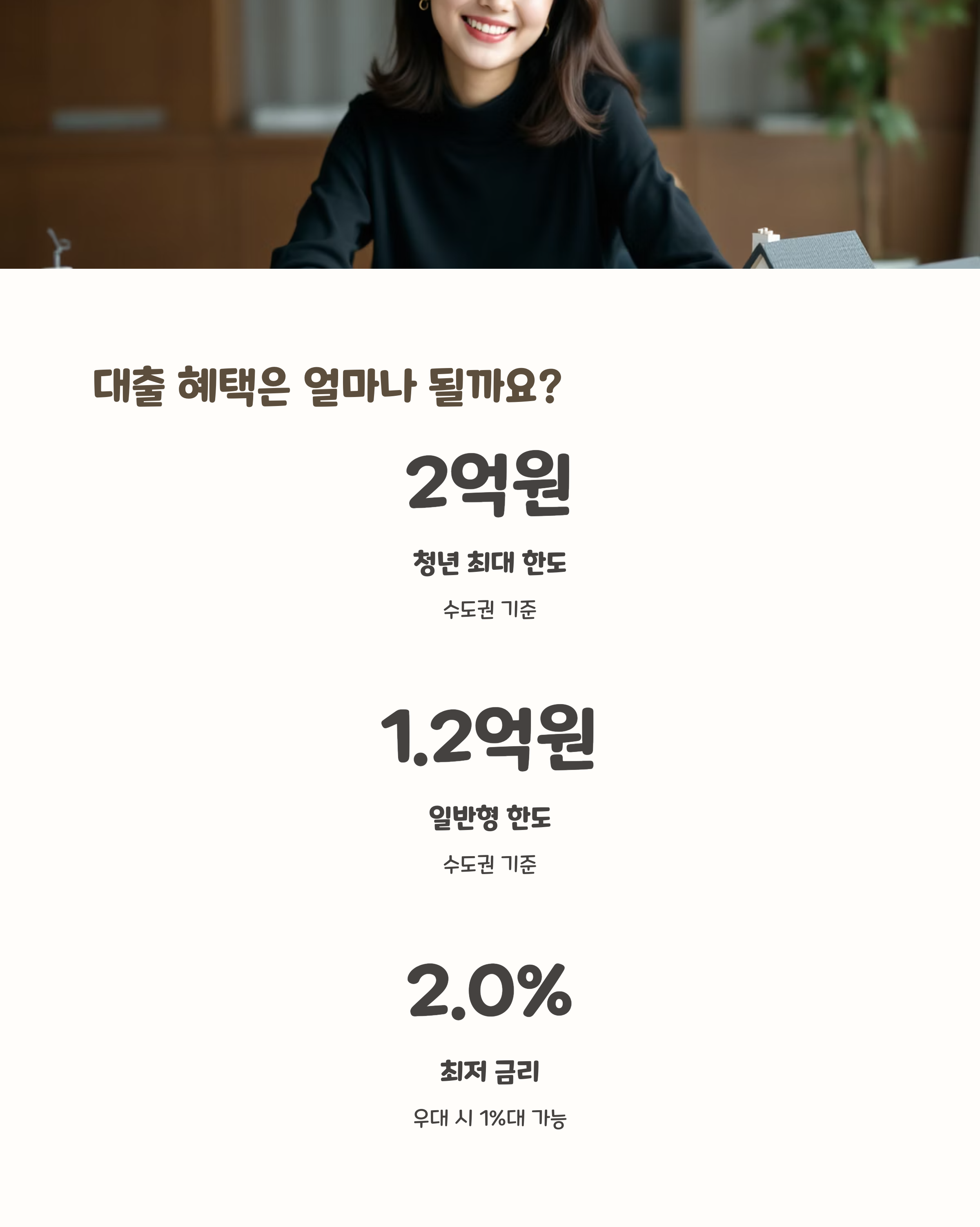 - 신혼가구 및 2자녀 이상 가구: 수도권 최대 3억원, 그 외 지역 최대 2억원.