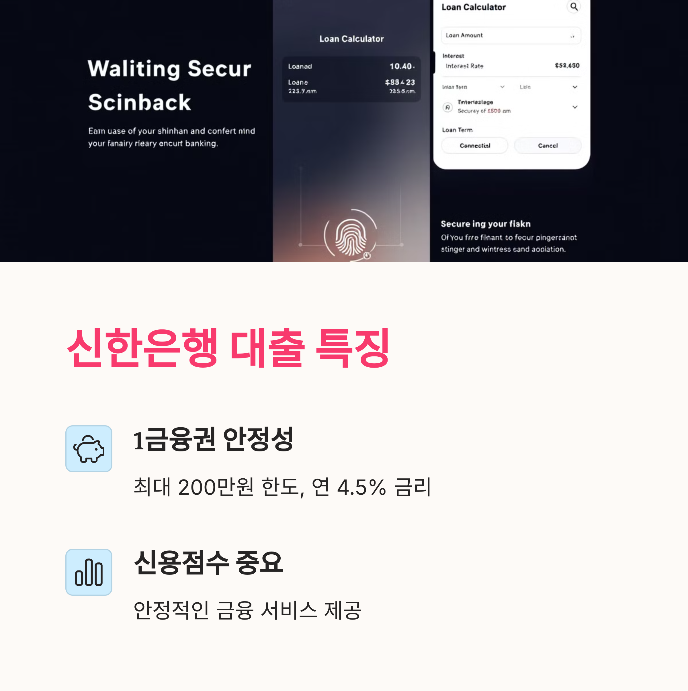 | 신한은행 쏠편한 비상금대출 | 200만 원 | 연 4.5%~ | 빠른 심사, 모바일 전용 |
