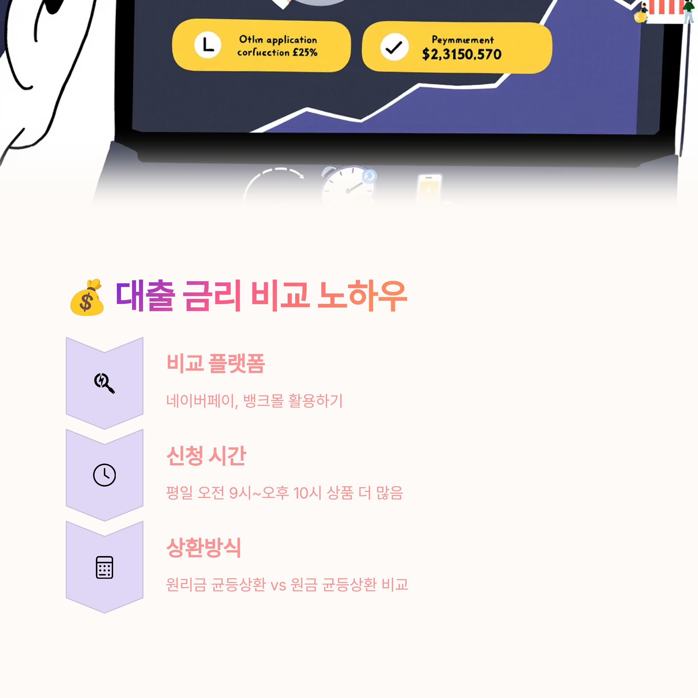 ✅ 대출 갈아타기 (대환대출) 고려: 기존 대출의 금리가 현재 시장 금리보다 현저히 높다면, 중도상환수수료와 갈아탔을 때의 이자 절감액을 비교하여 대출 갈아타기를 고려해 볼 수 있습니다. 주택담보대출 금리비교는 신규 대출뿐 아니라 갈아타기 시에도 중요합니다.