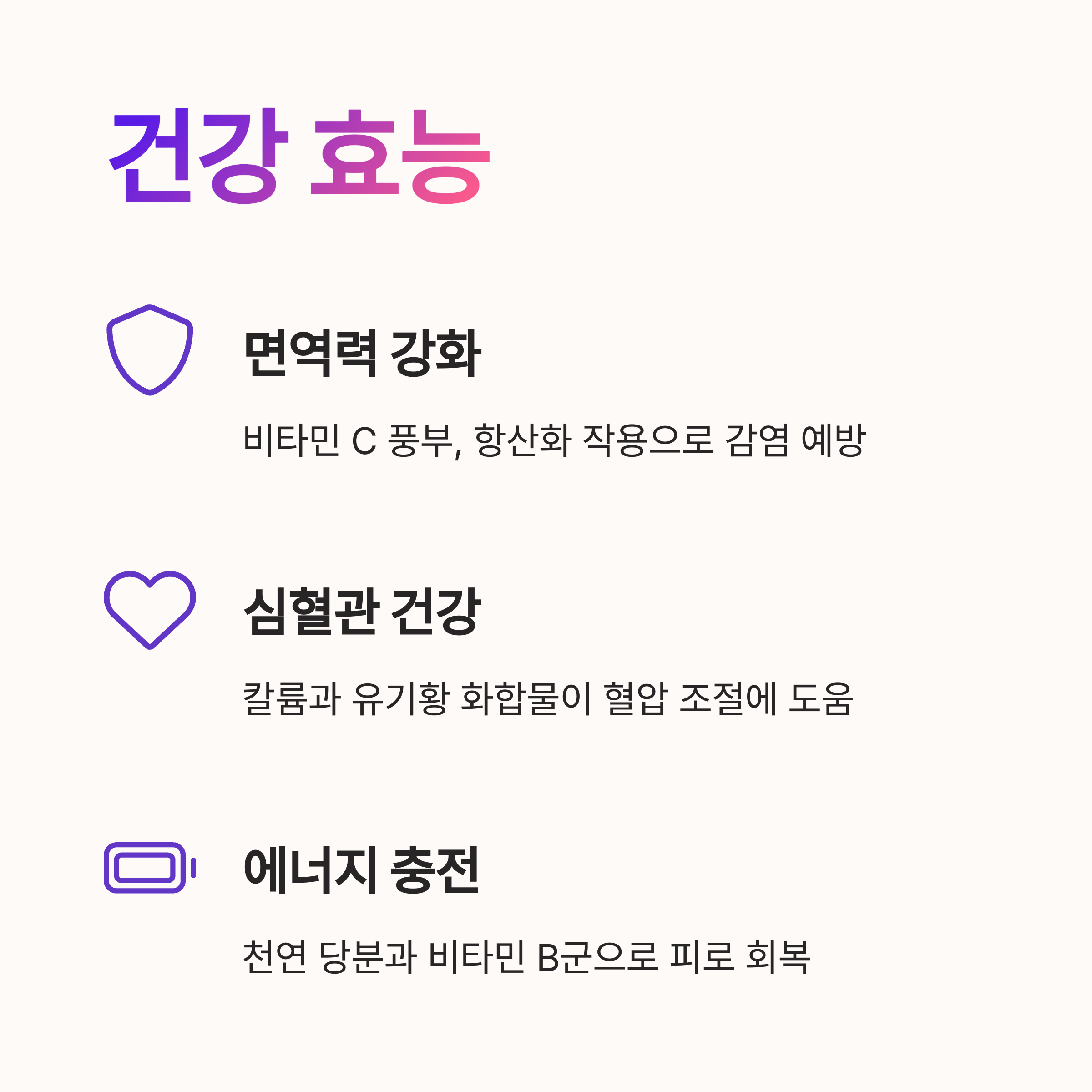 | 비타민 C | 면역력 강화, 항산화 | 약 19.7mg (일일 권장량 33%) |